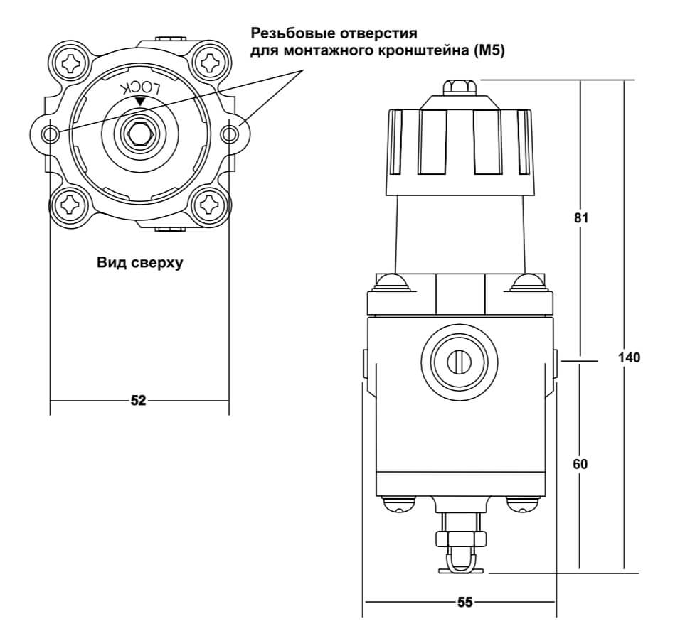 - Два різьбових отвори в корпусі дають змогу встановлювати манометр з боку, зручного для споживача;